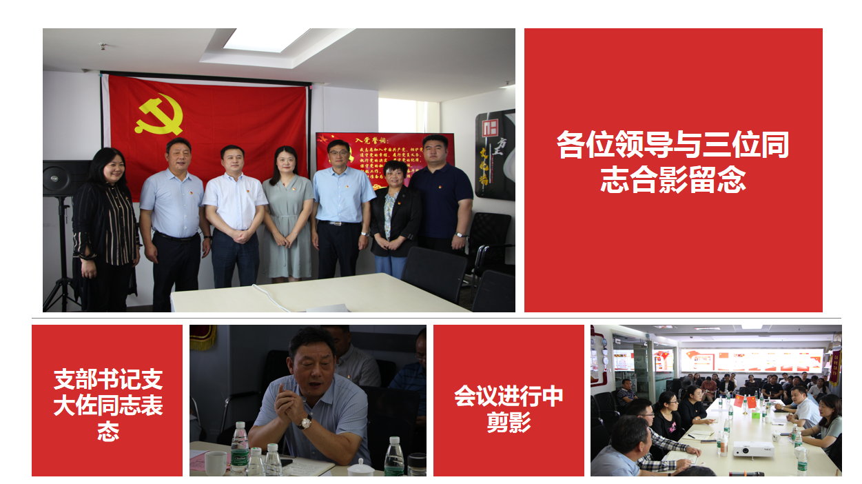 會議首先由閆洪珍、胡穎、支流三位同志從對黨的認(rèn)識、入黨動機(jī)、現(xiàn)實(shí)表現(xiàn)等方面向支部大會進(jìn)行匯報(bào),支部其他黨員對三位同志的整體情況進(jìn)行了討論并表決通過。支部書記支大佐同志宣布閆洪珍、支流、胡穎光榮成為中國共產(chǎn)黨預(yù)備黨員,并為其佩戴黨徽。